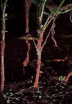 Rain-splashed soil and sclerotia on web blight affected bean plant (Picture courtesy of José Galindo)