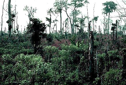 Slash and burn plot on road to Ibadan, Nigeria (includes cassava, maize, yams, oil palms)